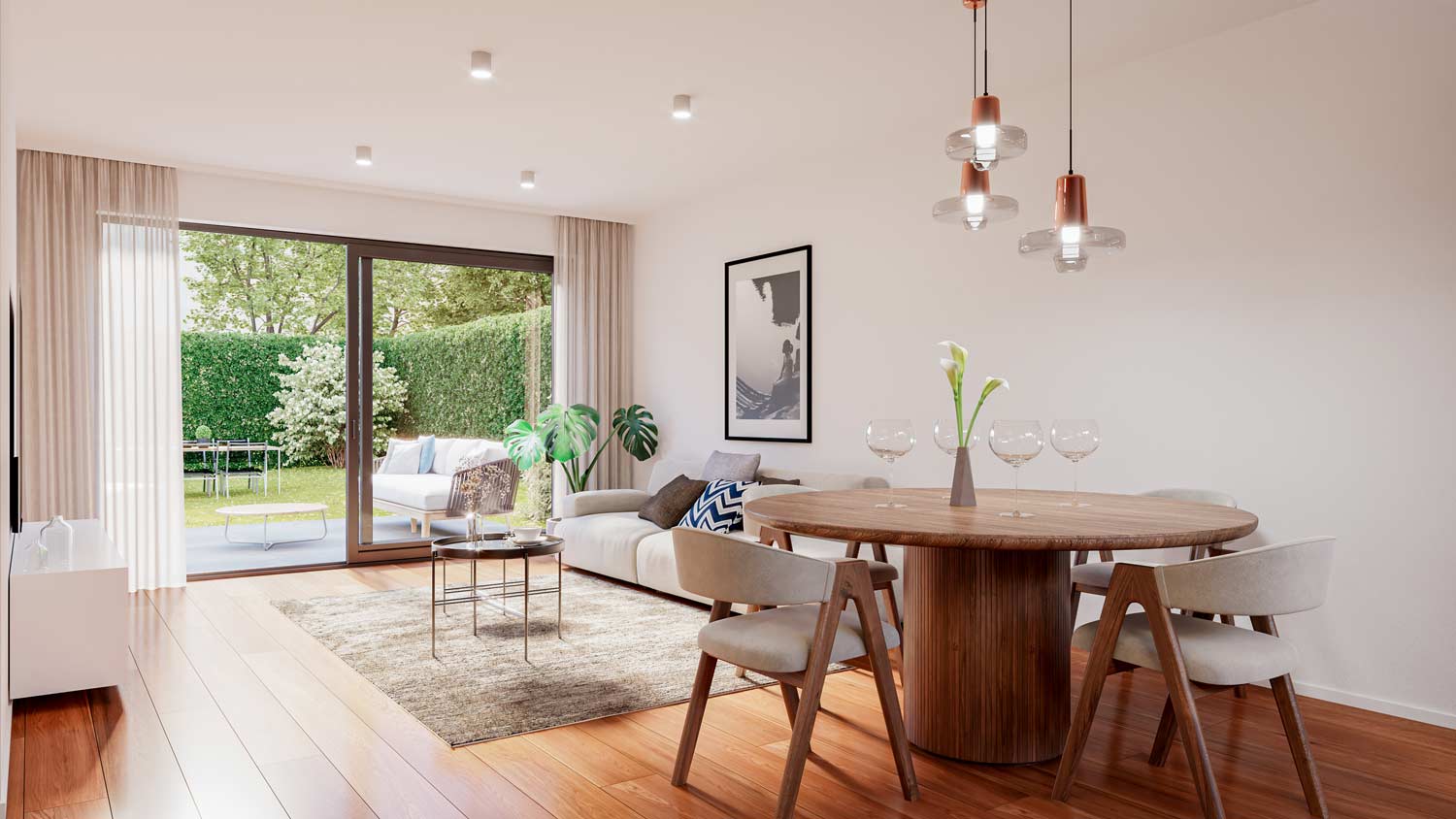Le projet est situé au long de la rue du Nouveau Monde, dans un endroit calme, loin de l'agitation de la ville, mais à proximité de toutes les commodités et proche des autoroutes E17 et E403. Des magasins, des restaurants, des écoles et des transports en commun sont également facilement accessibles. Chaque maison dispose de 3 pièces, d'un jardin privé, de panneaux solaires, d'une pompe à chaleur et d'un chauffage par le sol aux deux étages.